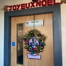 And these are the department entries for the Christmas door competition: A giant advent calendar wishing “Merry Christmas” in different languages (work in progress) and a very Merry Chalamet door.