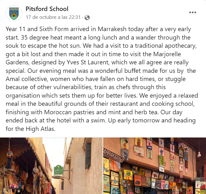 The Geography department organised an unforgettable trip for students in Year 11, 12 and 13 to Morocco. It was a visit where students did not only discover the beautiful landscapes of the country but also learnt about a new culture and way of living. Thank you Mr Lewis and the rest of the team! Students still talk about this trip and have very fond memories.